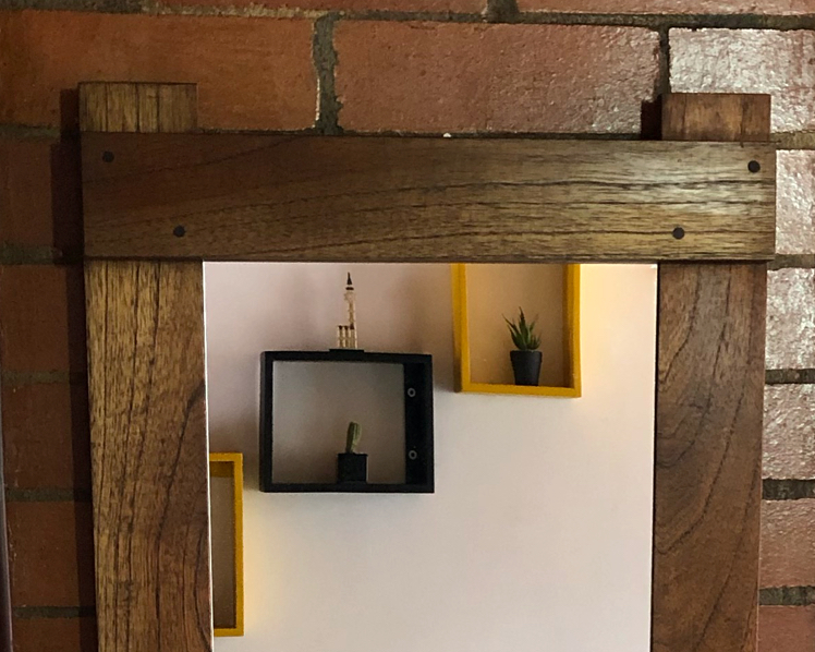 Elaborado con retal de madera, concepto de ensamble rústico, cubrimiento con aceite natural tinturado.
