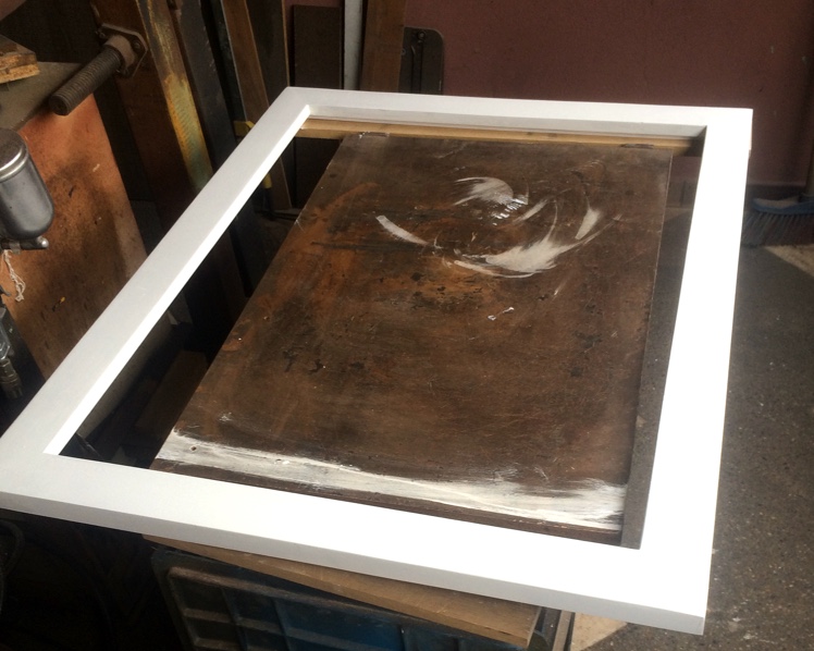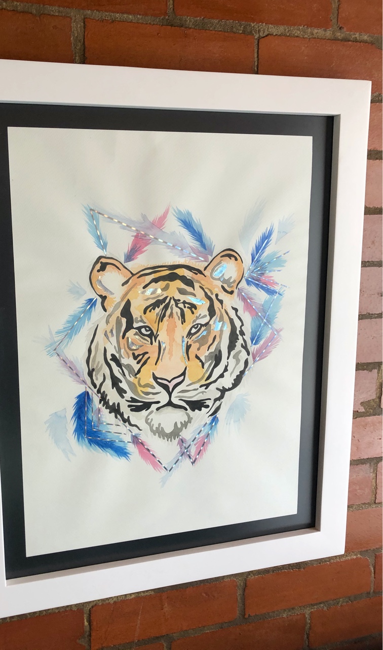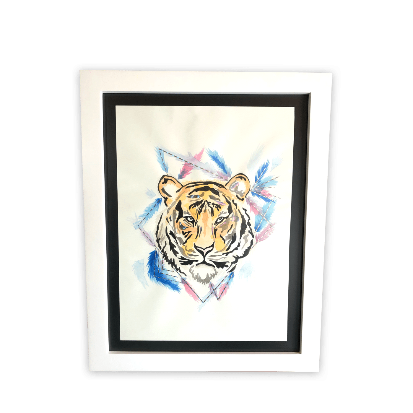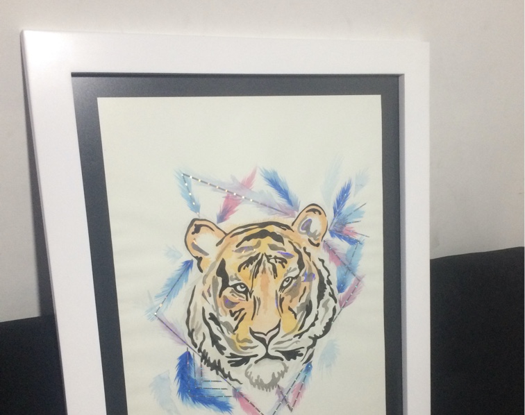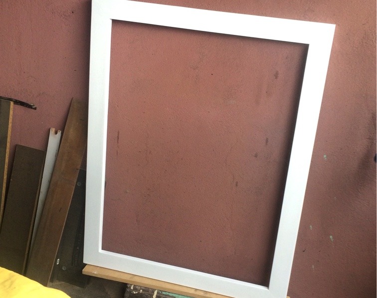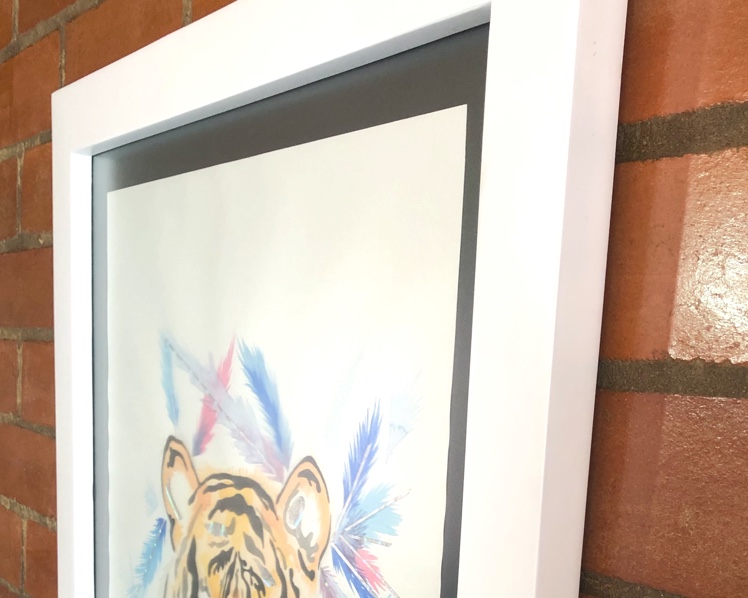 Marco en madera aglomerada, vidrio mate, pintura base laca blanca, terminado mate. Ilustracion personalizada (costo por separado).