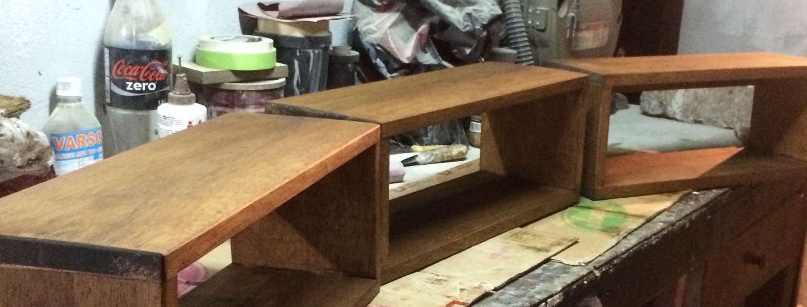 Repisas en madera reciclada y acabado rústico natural en color café para espacios personalizados.