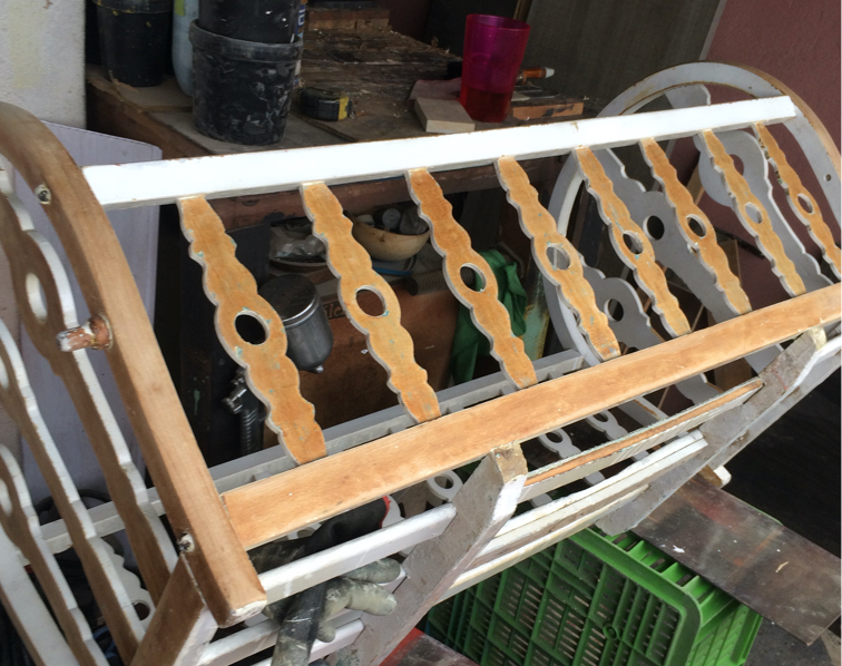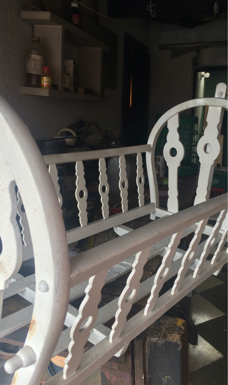 Renovación de moises con más de 100 años. Trabajo realizado pieza por pieza, remoción de 4 capas de pintura para volver al estado natural de la madera y pintado en sellador y laca, ajuste y fortalecimiento de base y soportes.
